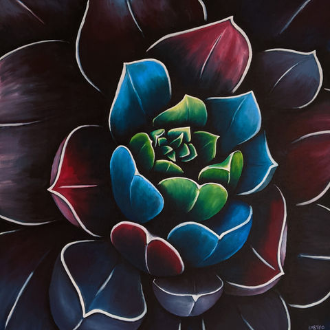 I make art to cope with the mental health challenges I developed from growing up in an emotionally toxic environment. For me, art serves as therapy, transforming the negative experiences of my childhood into something positive. I paint succulents and flowers because their organic shapes give me a feeling of tranquility.